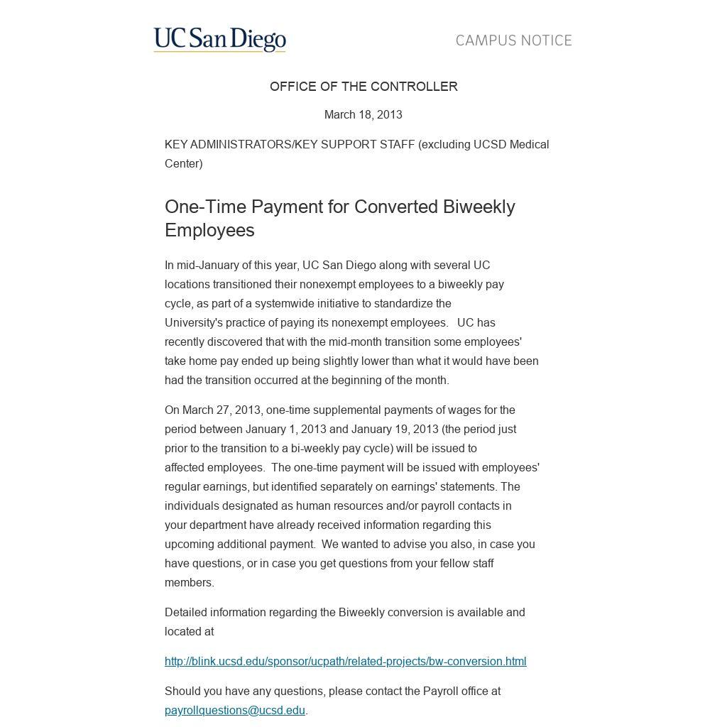 prior to the transition to a bi-weekly pay cycle) will be issued to