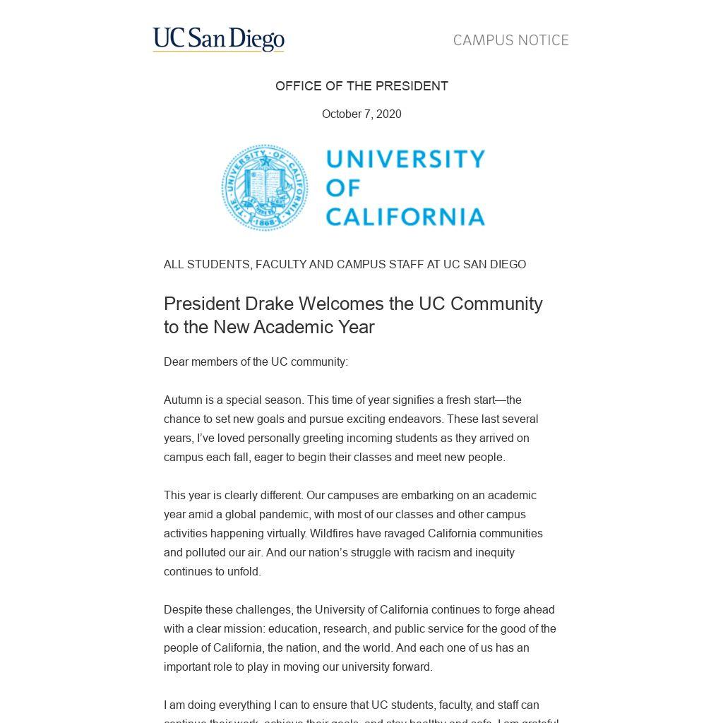 Dear members of the UC community: