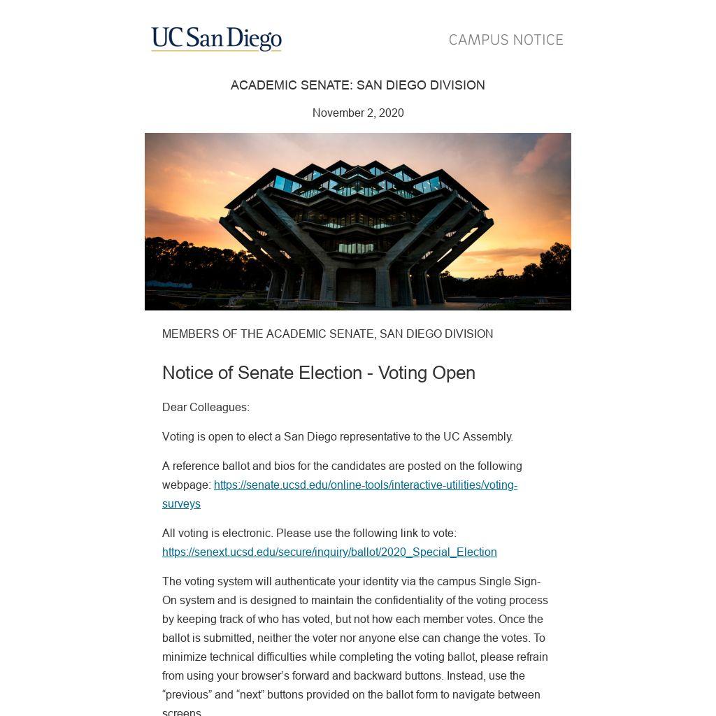 Voting is open to elect a San Diego representative to the UC Assembly.