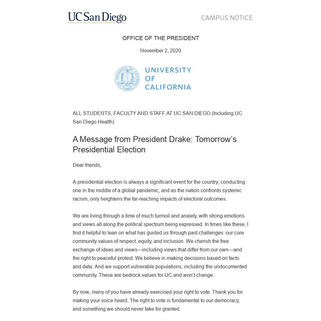 We are all here at UC because we want a better future for ourselves and our communities. No matter the results of the election, we will continue to move forward—together.