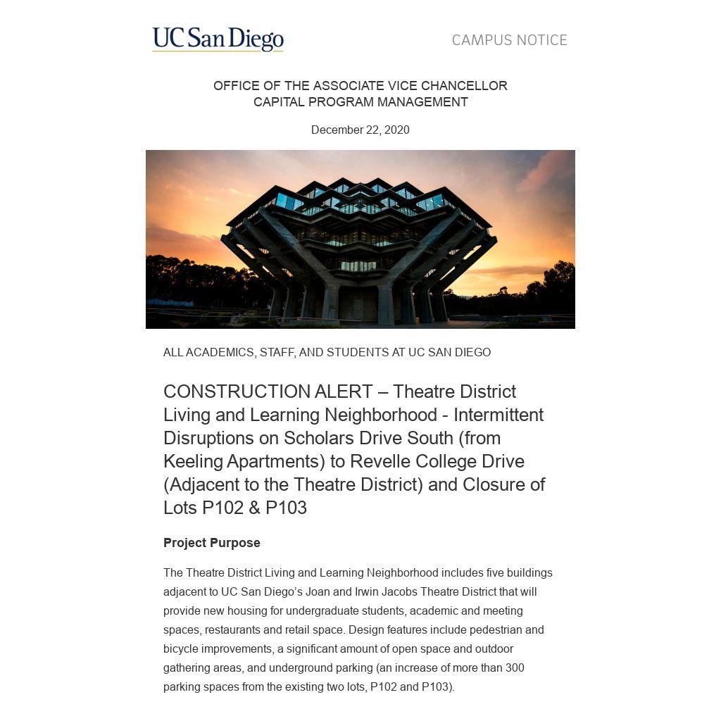 We greatly appreciate your patience as we work to improve the UC San Diego campus.