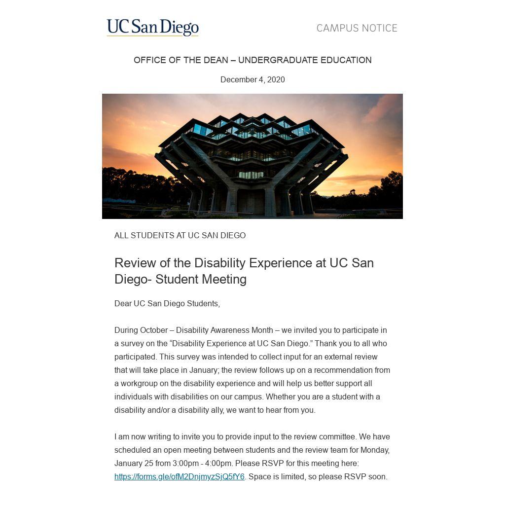 Review of the Disability Experience at UC San Diego- Student Meeting