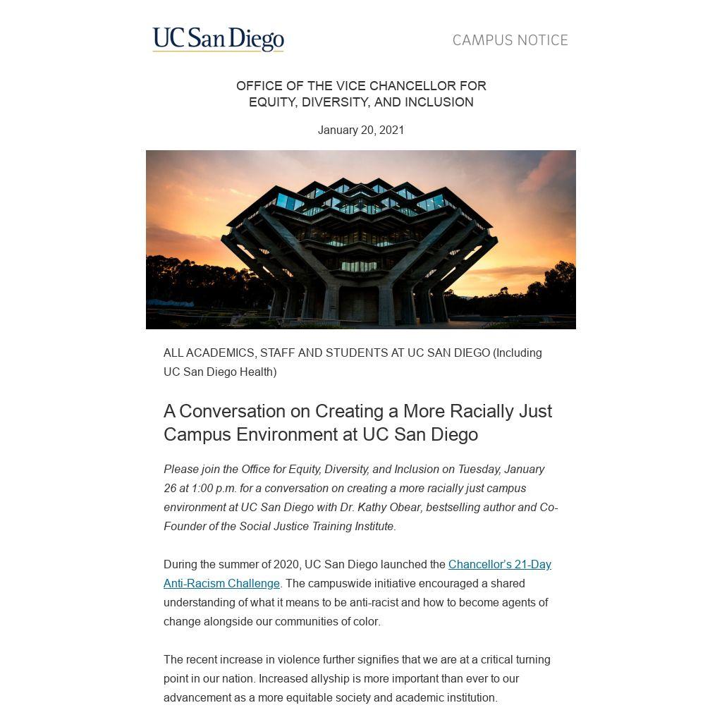 Register: Creating a More Racially Just Campus Environment at UC San Diego