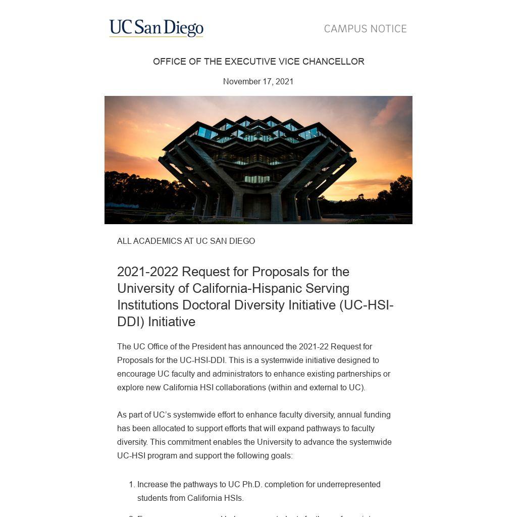2021-2022 Request for Proposals for the University of California-Hispanic Serving Institutions Doctoral Diversity Initiative (UC-HSI-DDI) Initiative