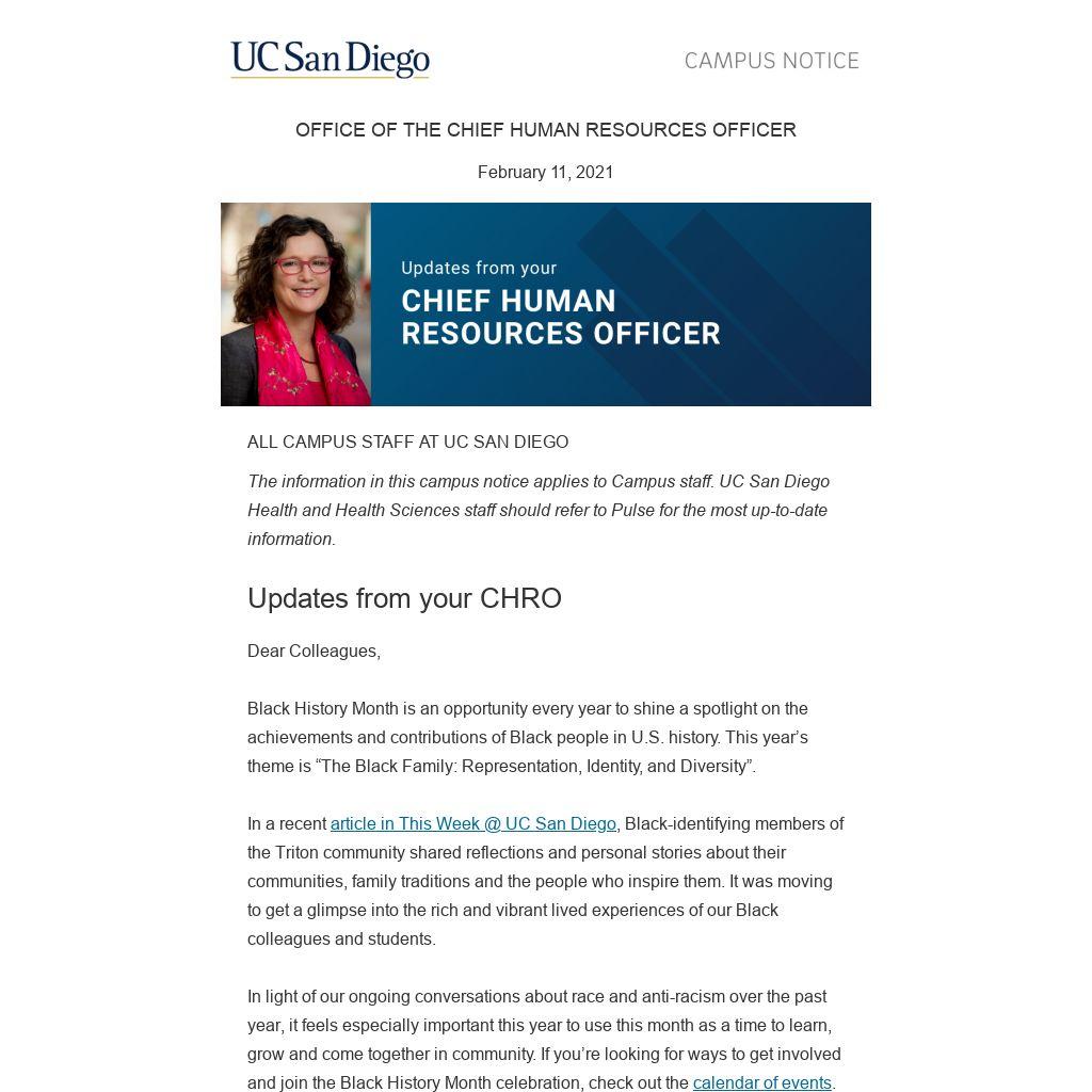 The information in this campus notice applies to Campus staff. UC San Diego Health and Health Sciences staff should refer to Pulse for the most up-to-date information.