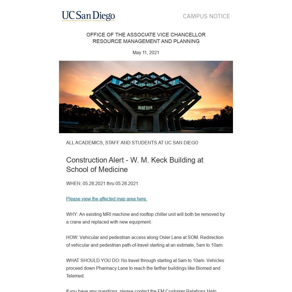 WHAT SHOULD YOU DO: No travel through starting at 5am to 10am. Vehicles proceed down Pharmacy Lane to reach the farther buildings like Biomed and Telemed.