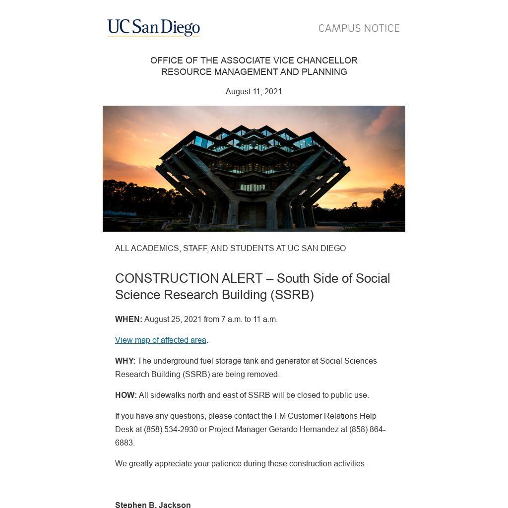 WHY: The underground fuel storage tank and generator at Social Sciences Research Building (SSRB) are being removed.