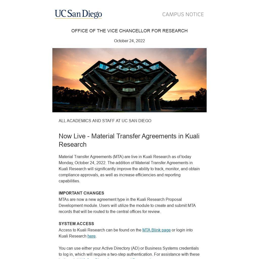 For any other questions related to Material Transfer Agreements, please contact MTAHelpDesk@ucsd.edu.