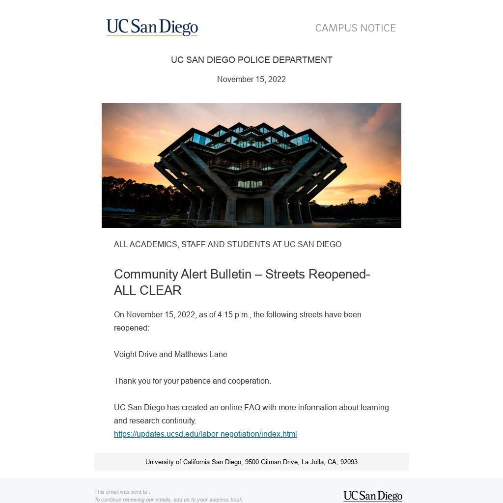 Community Alert Bulletin – Streets Reopened- ALL CLEAR