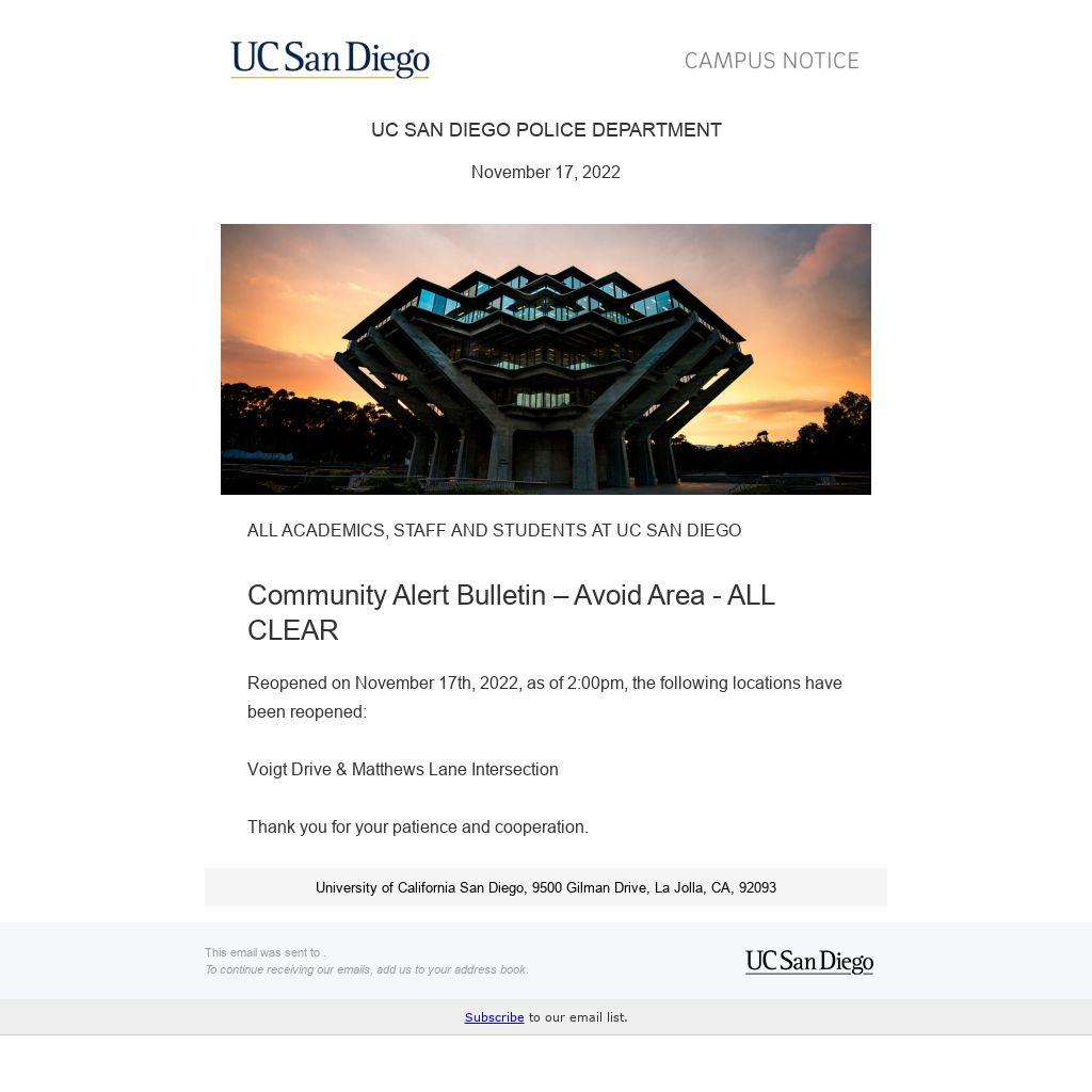 Community Alert Bulletin – Avoid Area - ALL CLEAR