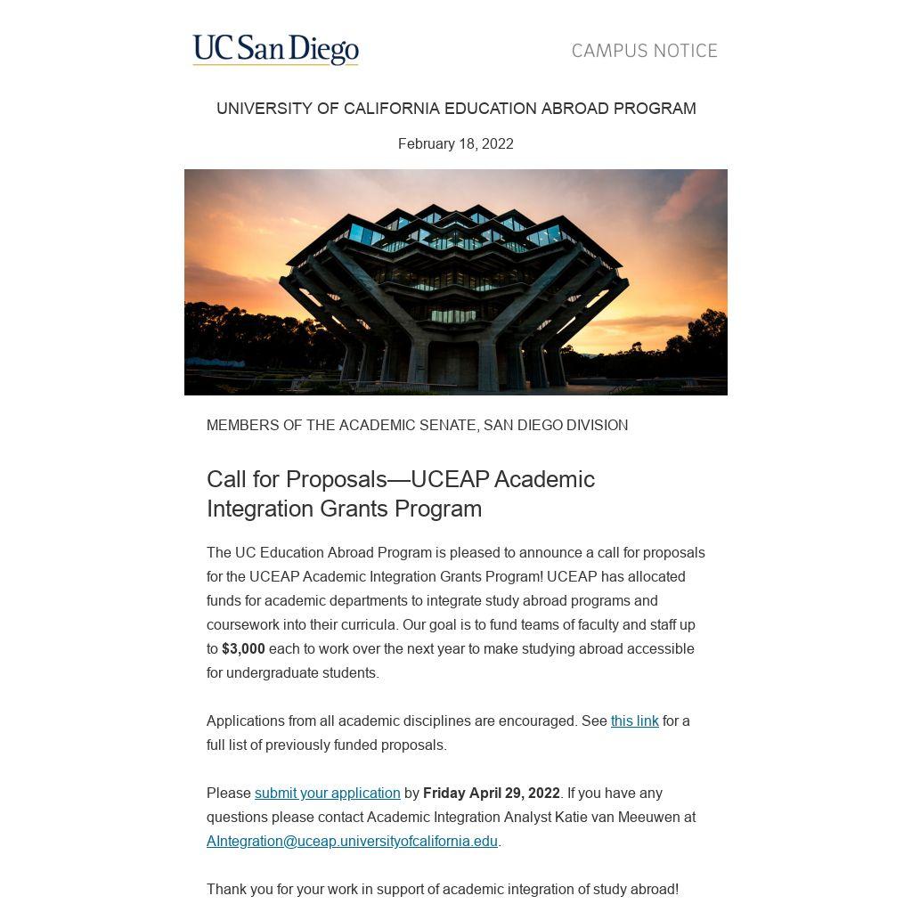 Call for Proposals—UCEAP Academic Integration Grants Program