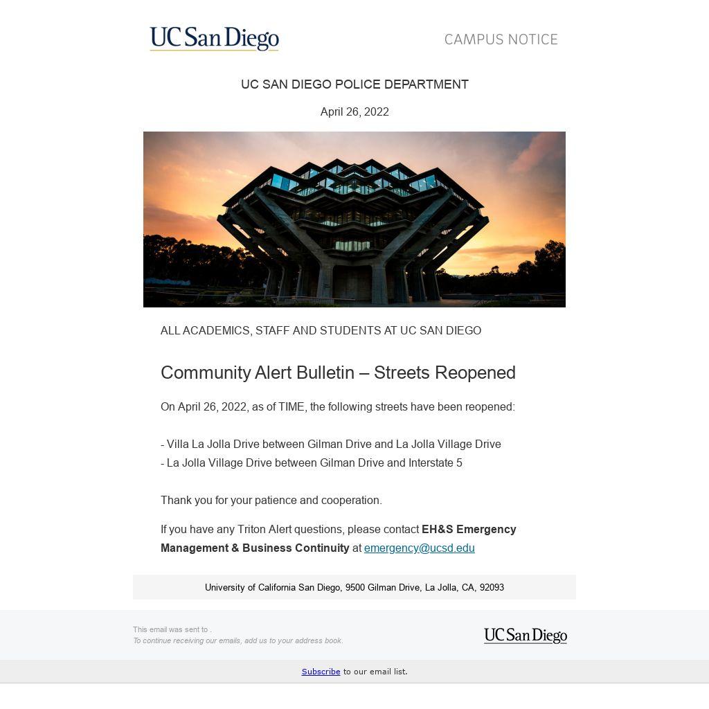 UC San Diego Campus Notice