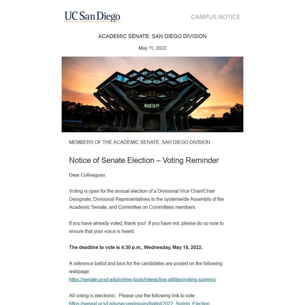 Notice of Senate Election – Voting Reminder