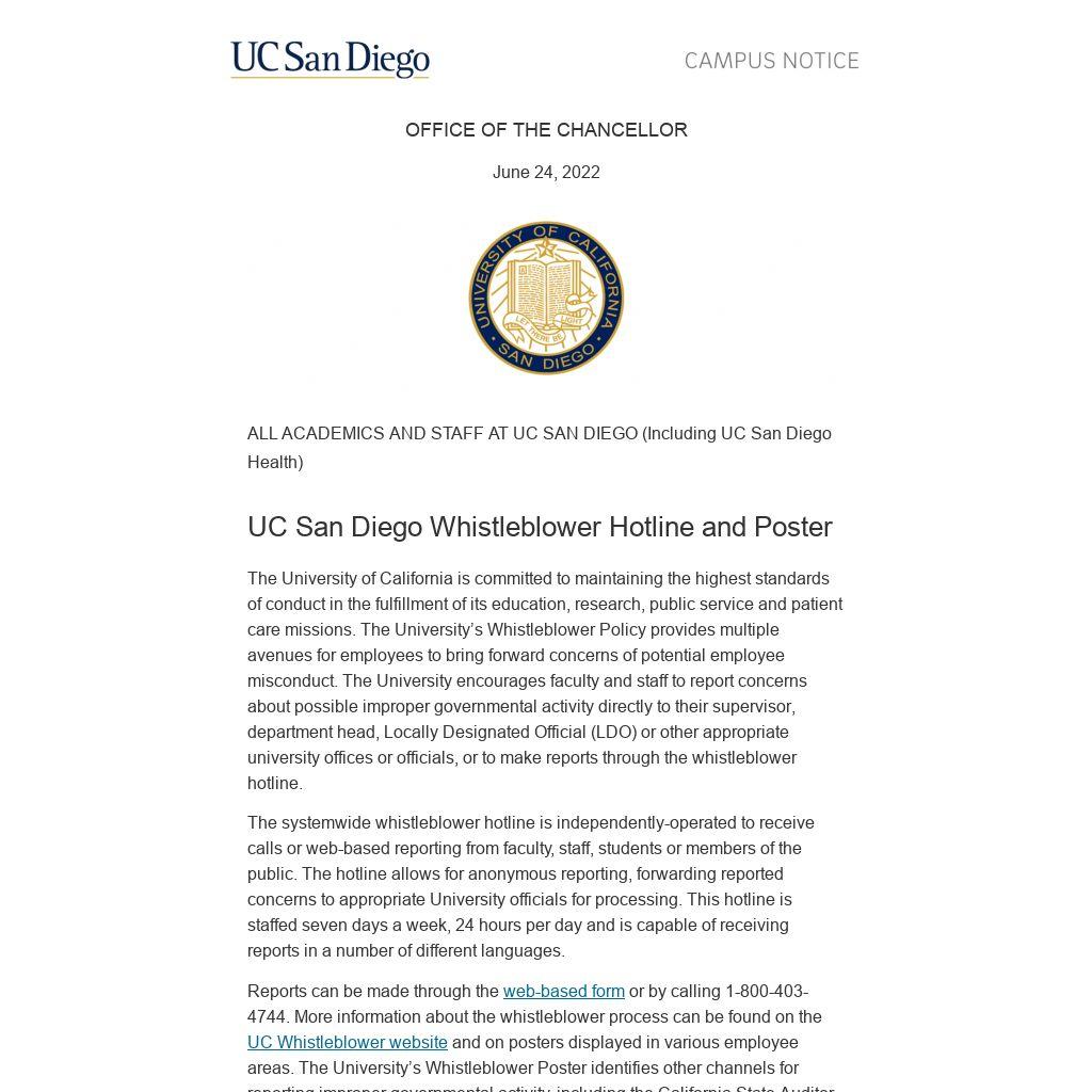 - Call the Whistleblower Hotline at (800) 952-5665 or fax (916) 322-2603.