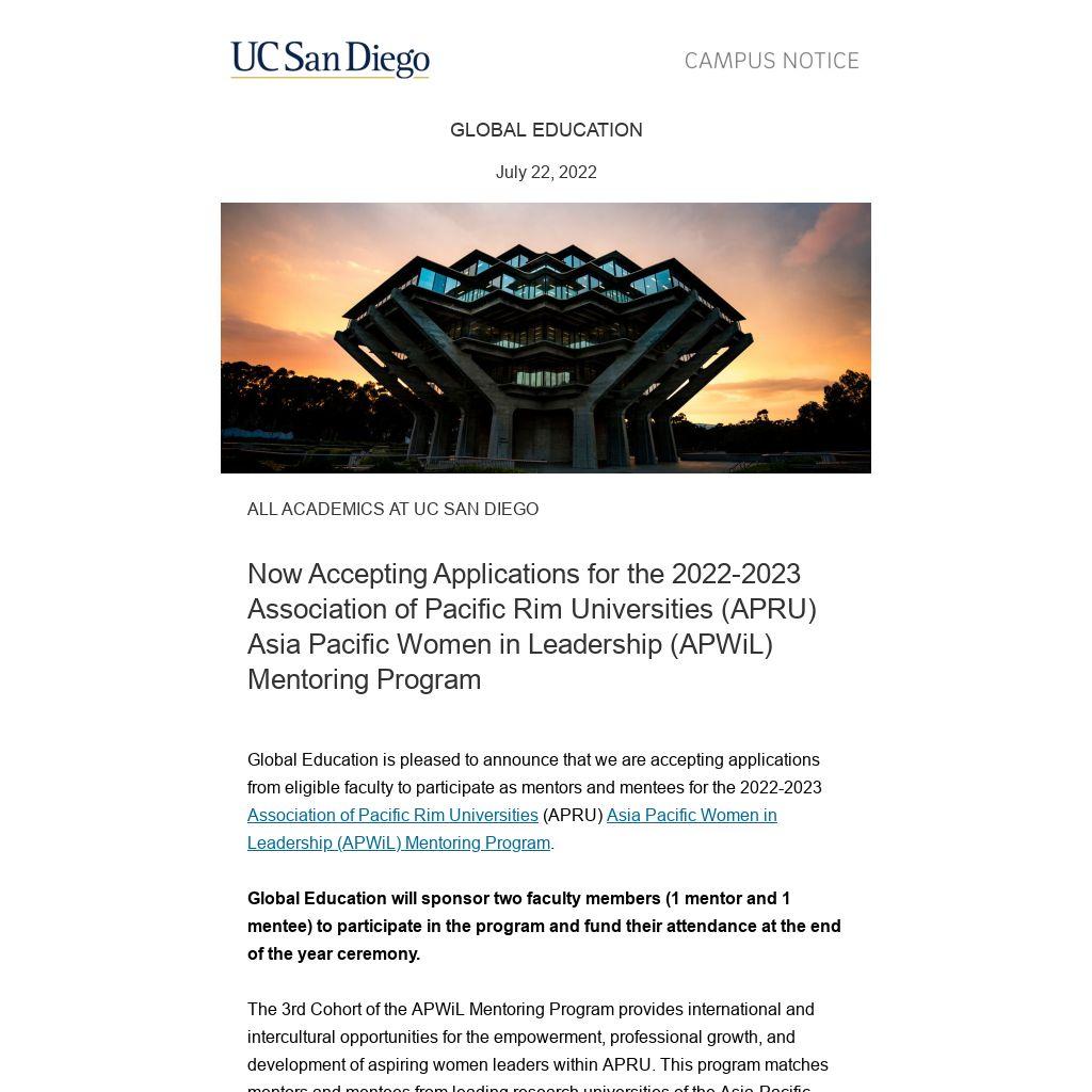 - Mentors must be committed to supporting the growth of aspiring women leaders at APRU institutions.