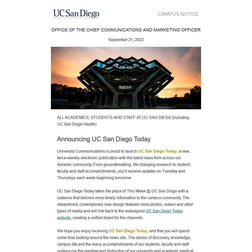 Announcing UC San Diego Today
