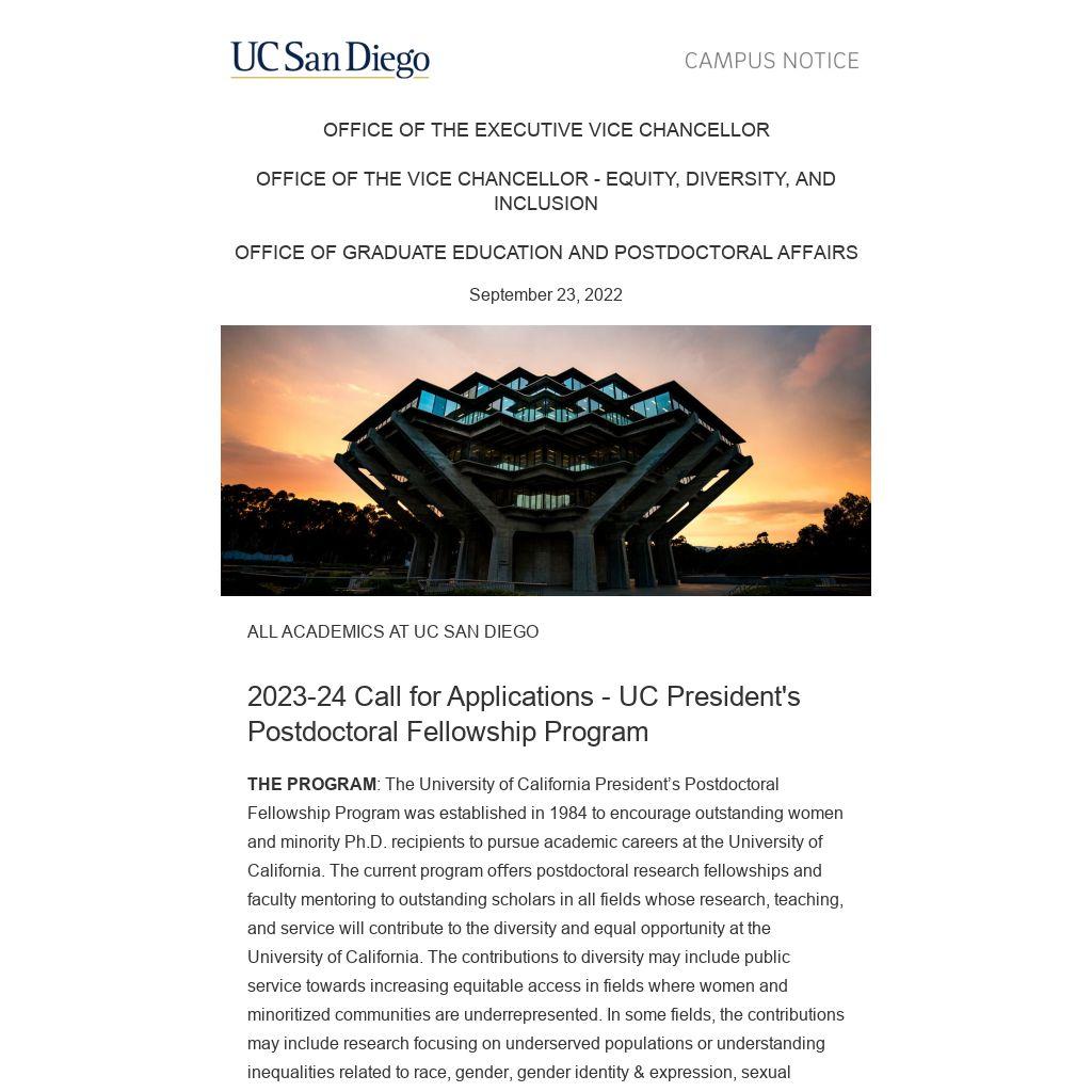 2023-24 Call for Applications - UC President's Postdoctoral Fellowship Program