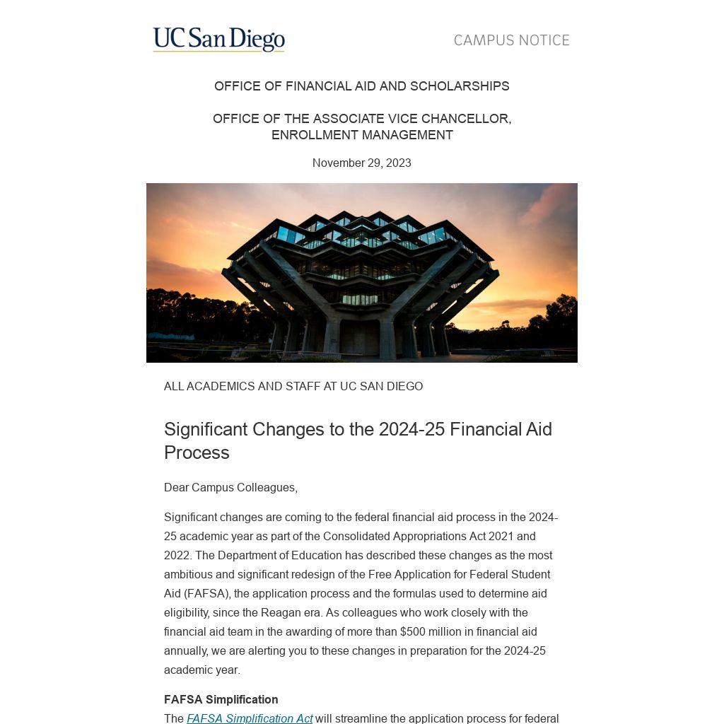 More information is available on our FAFSA Simplification webpage. We will continue to provide updates, resources and support to the UC San Diego community as we navigate these changes together.
