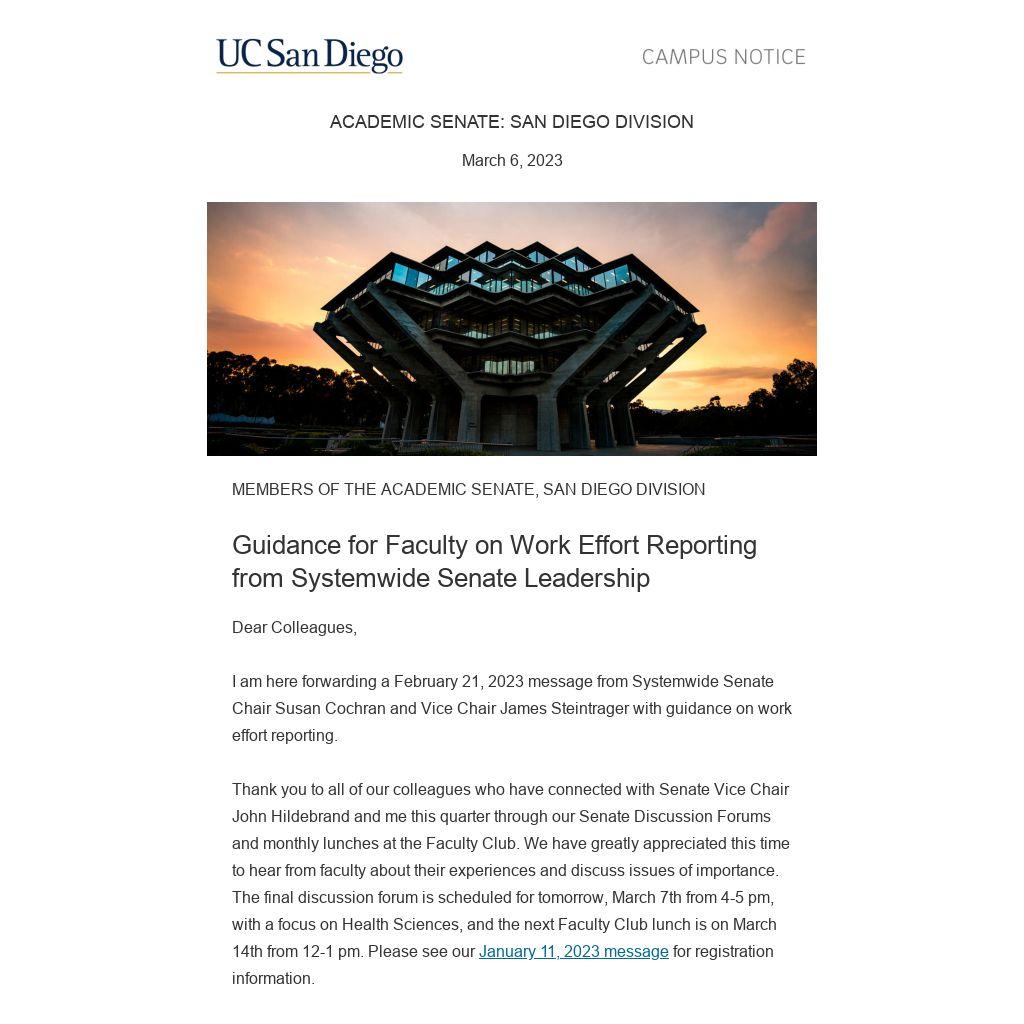 This letter is sent on behalf of Academic Council Chair Susan Cochran and Academic Council Vice Chair James Steintrager.