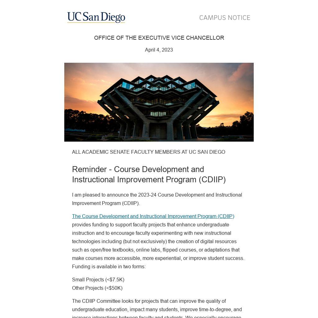 I am pleased to announce the 2023-24 Course Development and Instructional Improvement Program (CDIIP).