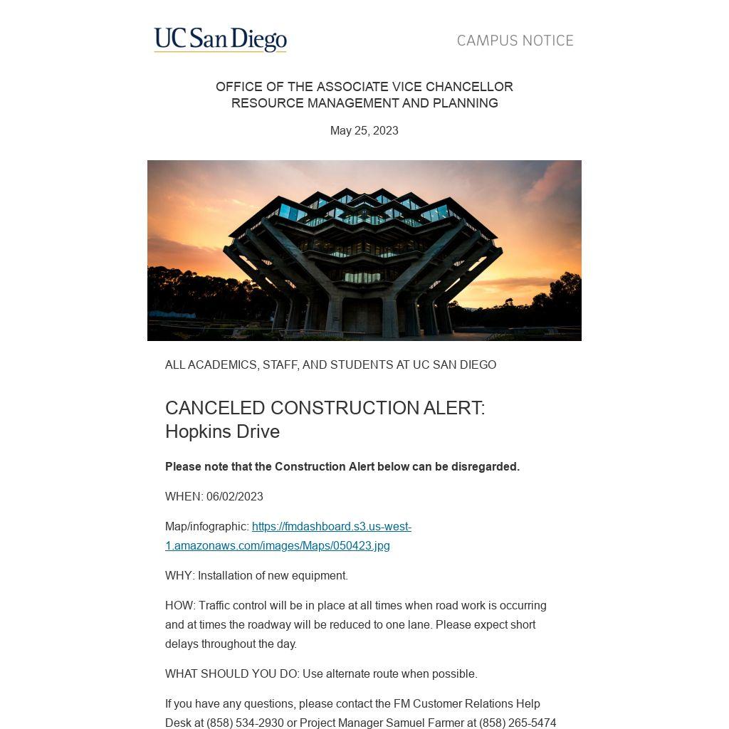 If you have any questions, please contact the FM Customer Relations Help Desk at (858) 534-2930 or Project Manager Samuel Farmer at (858) 265-5474