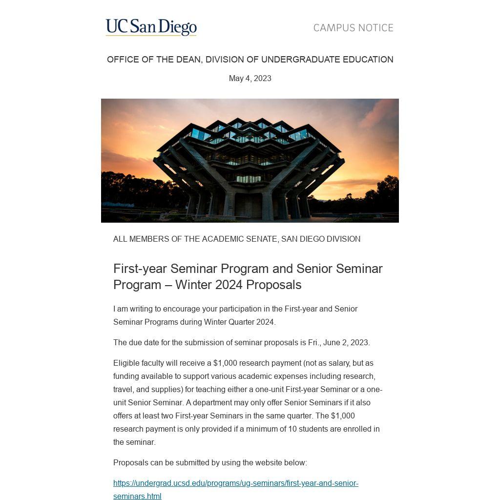 I am writing to encourage your participation in the First-year and Senior Seminar Programs during Winter Quarter 2024.
