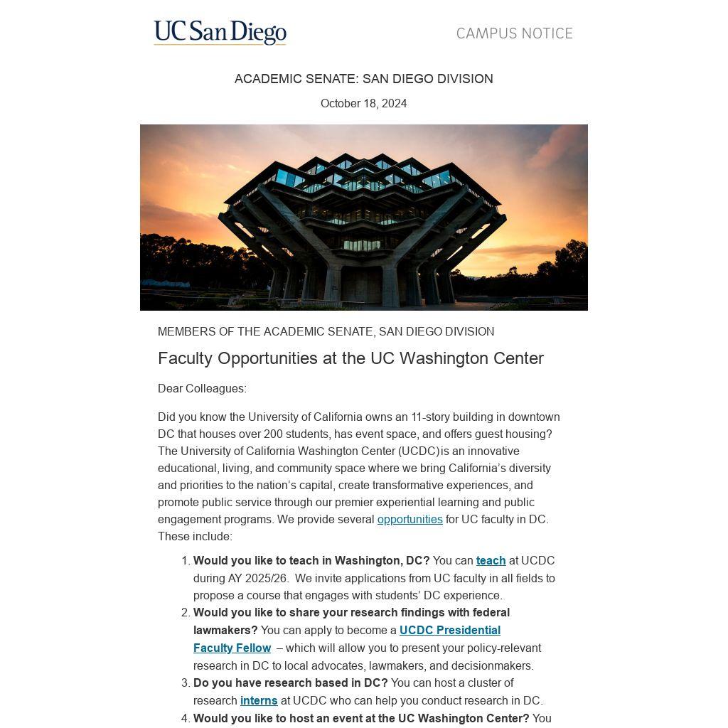 Faculty Opportunities at the UC Washington Center |