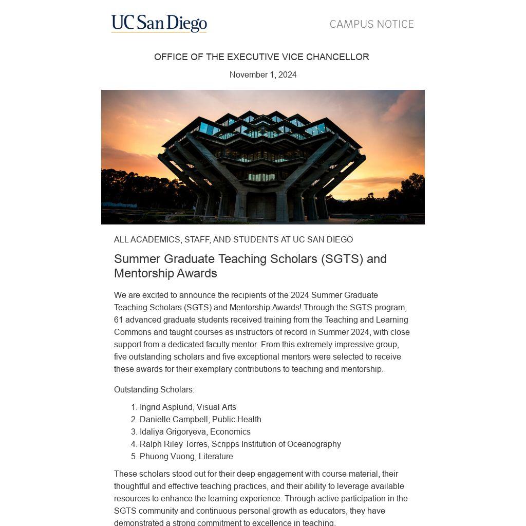 Summer Graduate Teaching Scholars (SGTS) and Mentorship Awards |