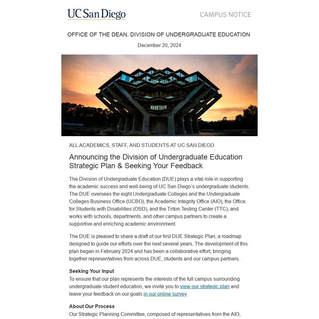 Thank you for your engagement and support as we work together to enhance undergraduate education at UC San Diego
