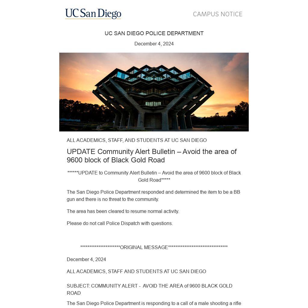 ******UPDATE to Community Alert Bulletin – Avoid the Area of 9600 Block of Black Gold Road*****