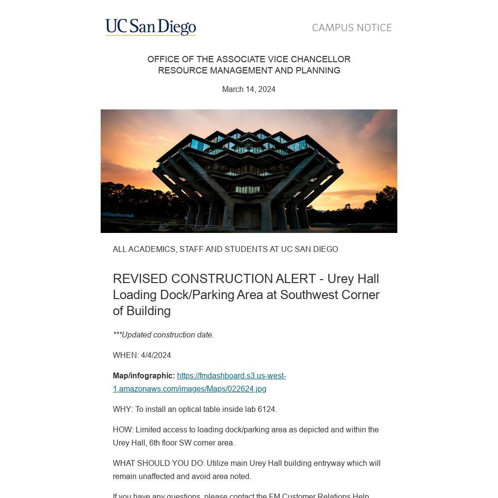 WHAT SHOULD YOU DO: Utilize main Urey Hall building entryway which will remain unaffected and avoid area noted.