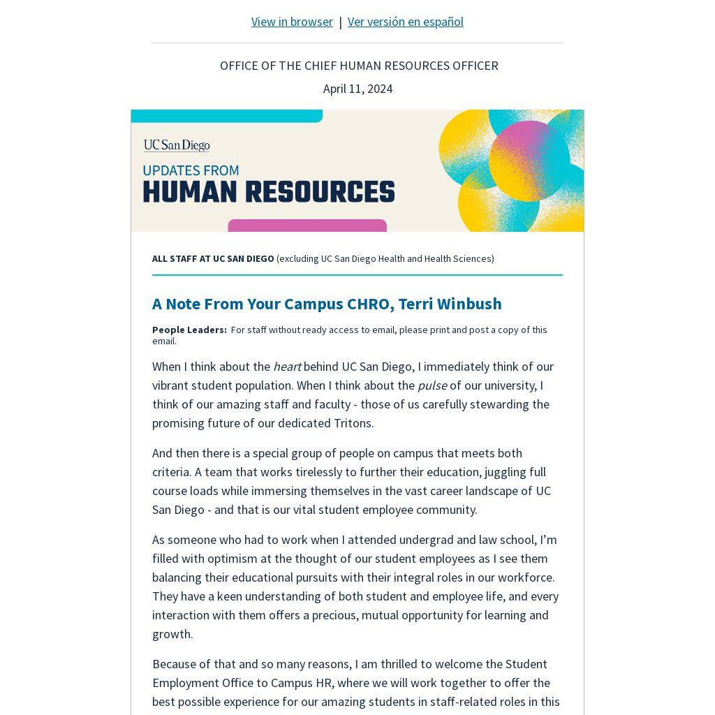 Because of that and so many reasons, I am thrilled to welcome the Student Employment Office to Campus HR, where we will work together to offer the best possible experience for our amazing students in staff-related roles in this hybrid world.