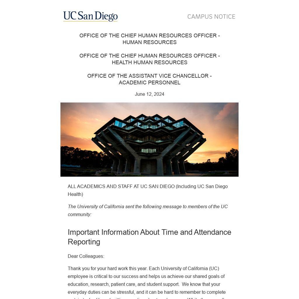 Thank you for your hard work this year. Each University of California (UC) employee is critical to our success and helps us achieve our shared goals of education, research, patient care, and student support. We know that your everyday duties can be stressful, and it can be hard to remember to complete certain tasks, like submitting your timesheet or absences. While these small tasks are sometimes the most difficult to remember, they are critical to our shared success and duty as a public employer.