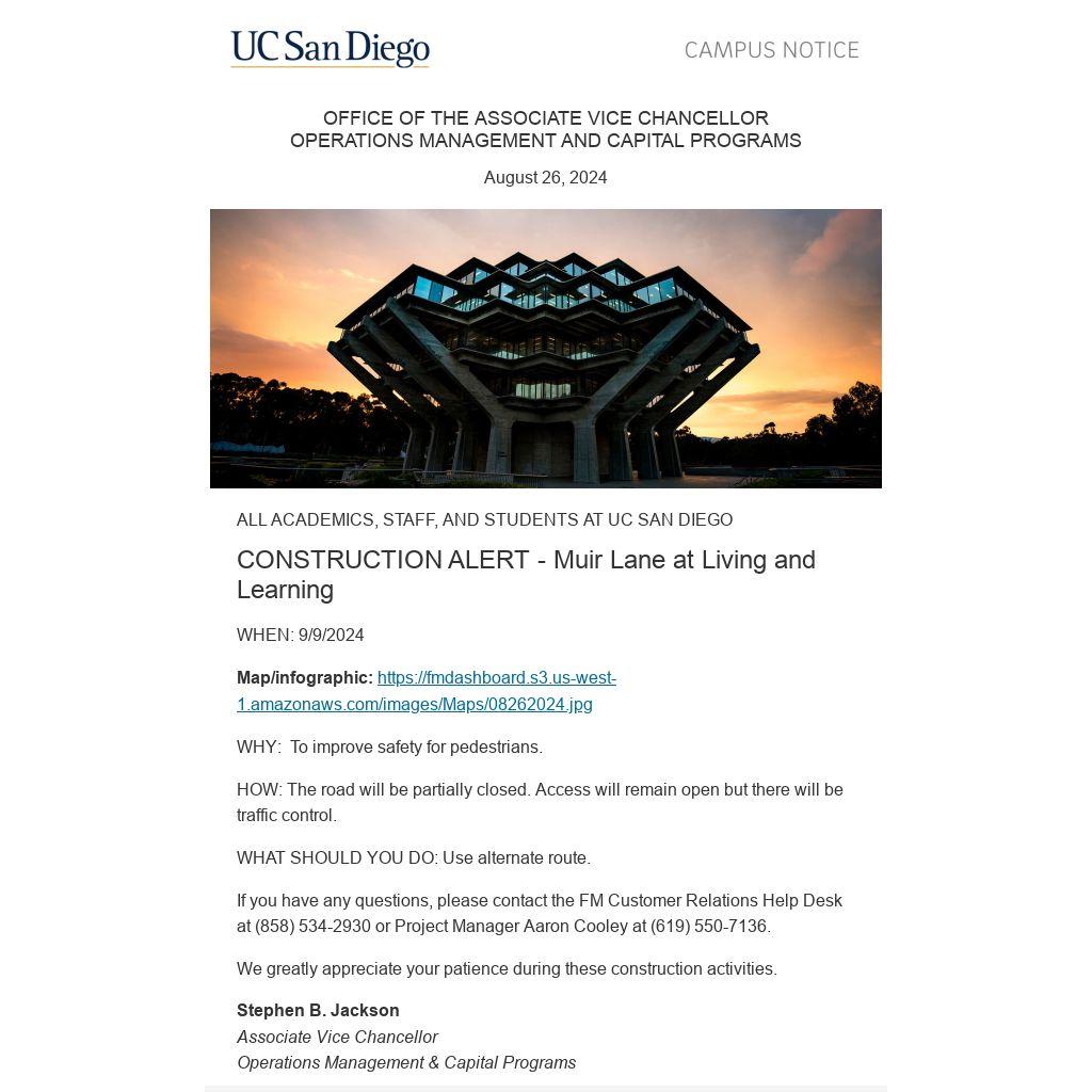 If you have any questions, please contact the FM Customer Relations Help Desk at (858) 534-2930 or Project Manager Aaron Cooley at (619) 550-7136.
