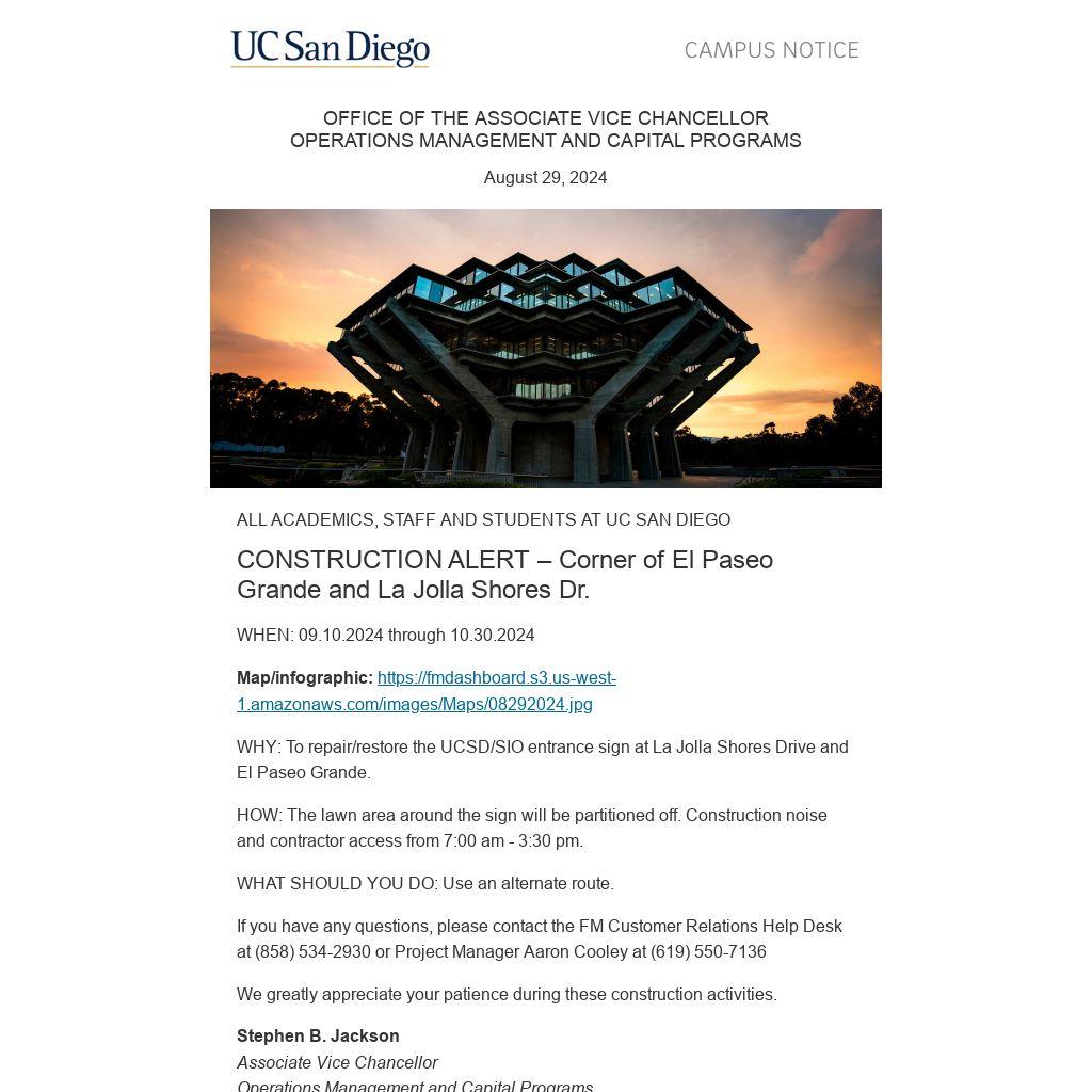 WHY: To repair/restore the UCSD/SIO entrance sign at La Jolla Shores Drive and El Paseo Grande.