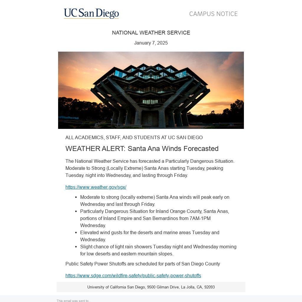 WEATHER ALERT: Santa Ana Winds Forecasted |