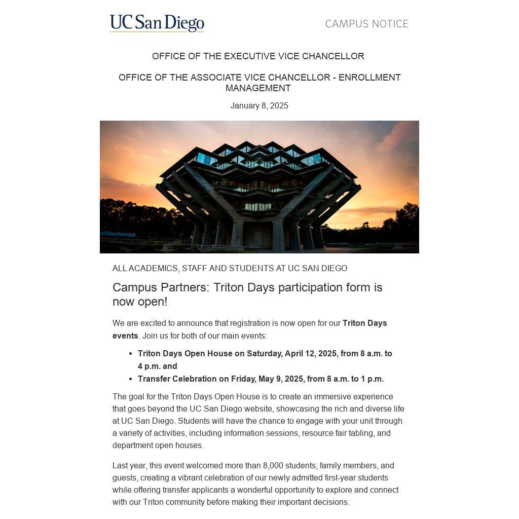Thank you for your continued support and enthusiasm. Let’s create a memorable experience for our future Tritons, together!
