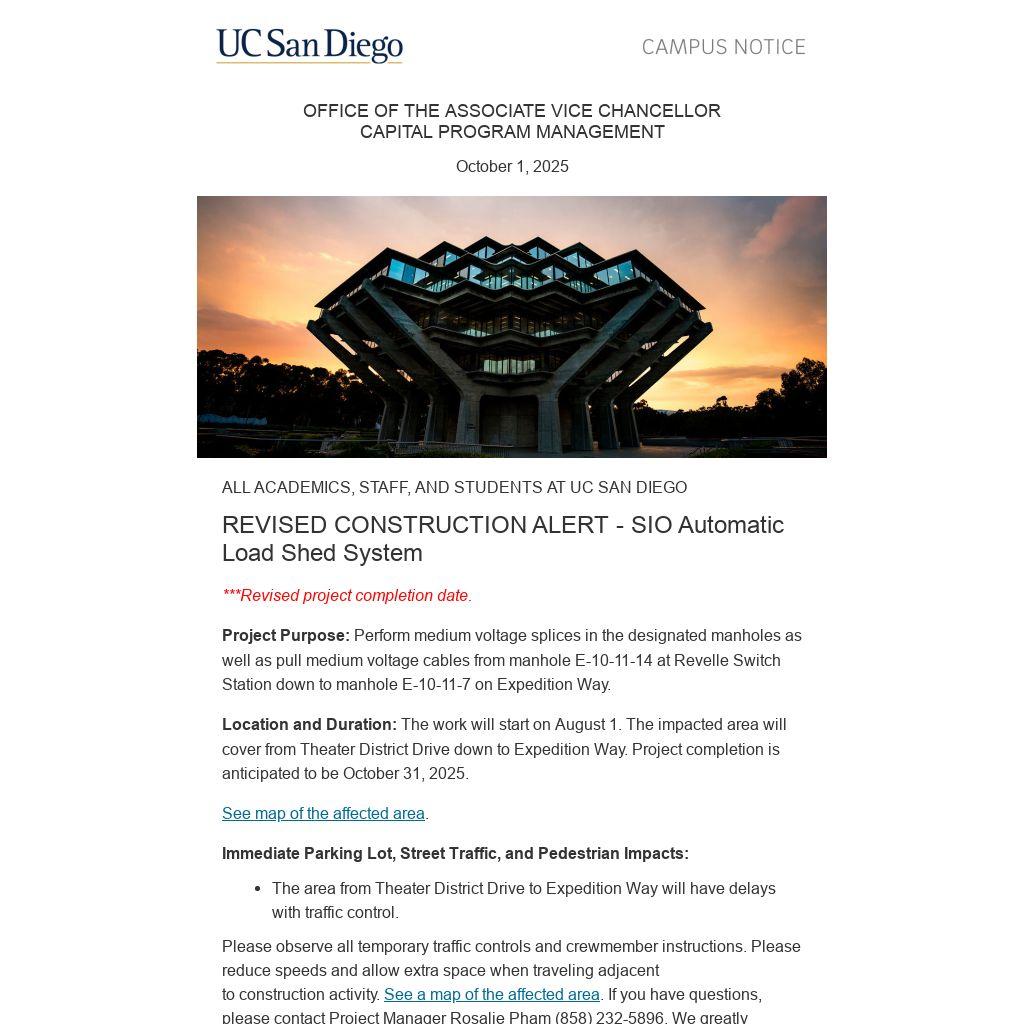 Location and Duration: The work will start on August 1. The impacted area will cover from Theater District Drive down to Expedition Way. Project completion is anticipated to be October 31, 2025.
