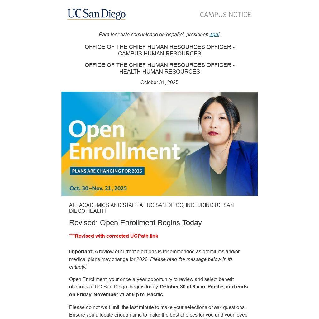 Once you have decided which benefit choices are right for you and your family, access the UCPath Portal to update your enrollment for 2026. We encourage you to learn more by visiting the UC Open Enrollment website.