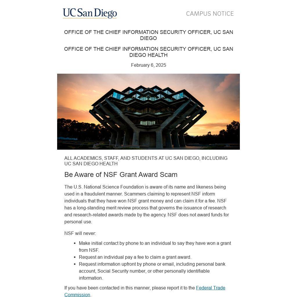 Be Aware of NSF Grant Award Scam |