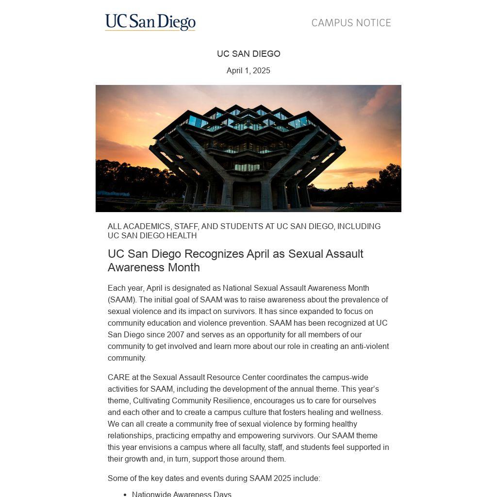 UC San Diego Recognizes April as Sexual Assault Awareness Month |