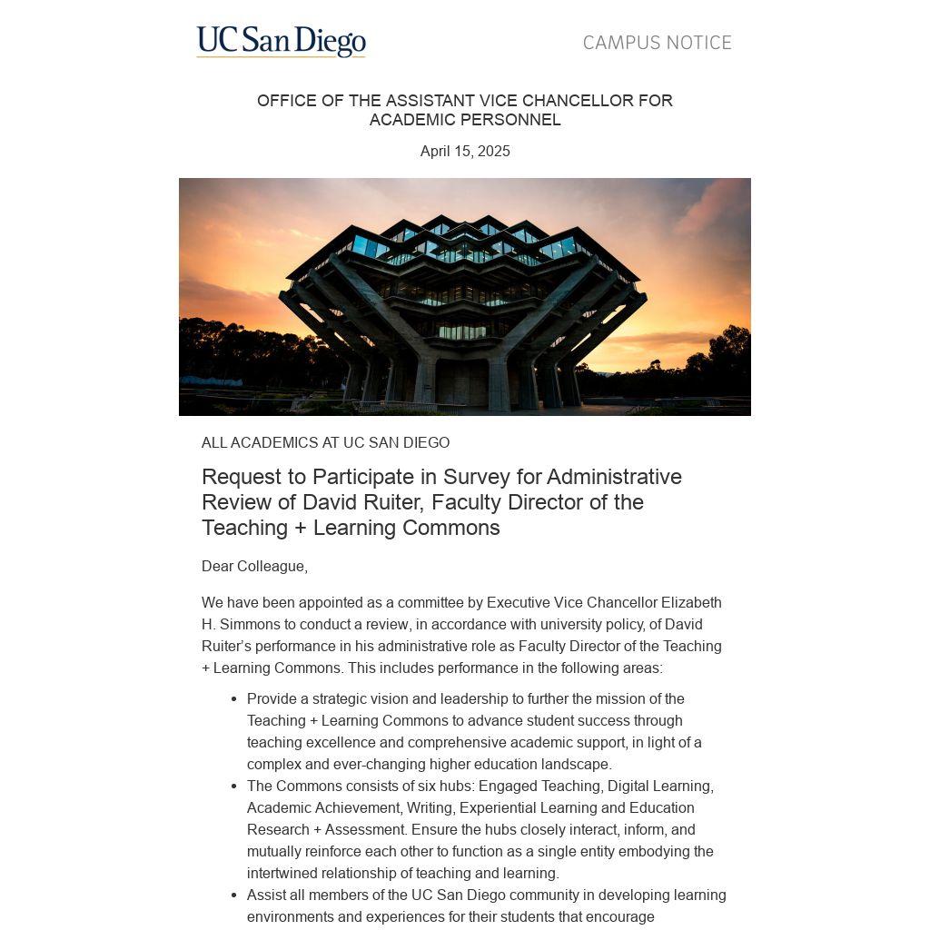 Request to Participate in Survey for Administrative Review of David Ruiter, Faculty Director of the Teaching + Learning Commons |