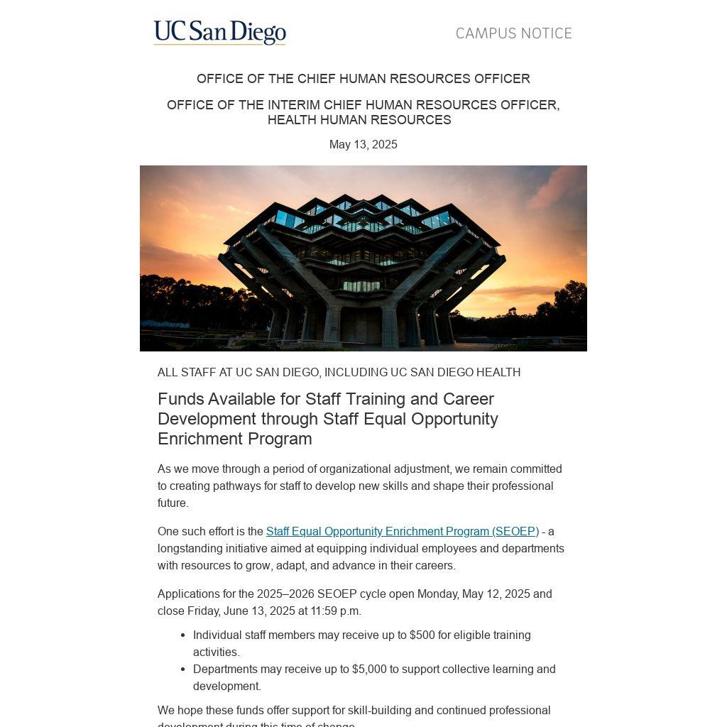 One such effort is the Staff Equal Opportunity Enrichment Program (SEOEP) - a longstanding initiative aimed at equipping individual employees and departments with resources to grow, adapt, and advance in their careers.