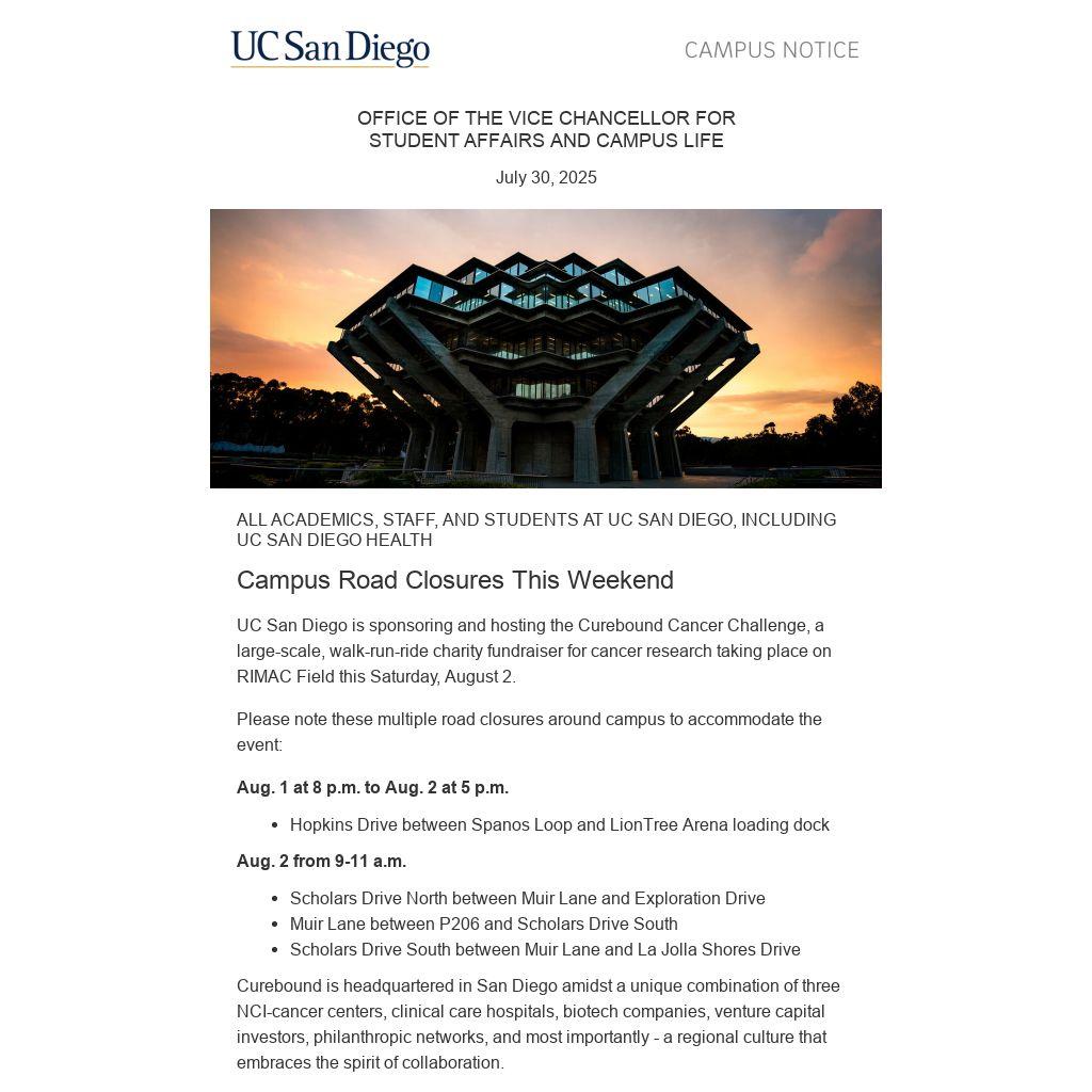 Campus Road Closures This Weekend |